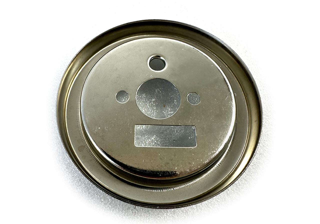 Genuine Broil-King Large Control Knob Bezel. Metal Bezel with chrome finish measures 3 inches in diameter.