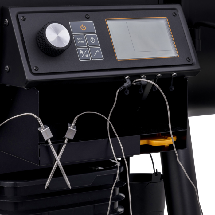 • FEATURES: Modular side shelf and towel bar with tool hooks and Four Meat Probe Ports with probe and tool storage (two probes included)