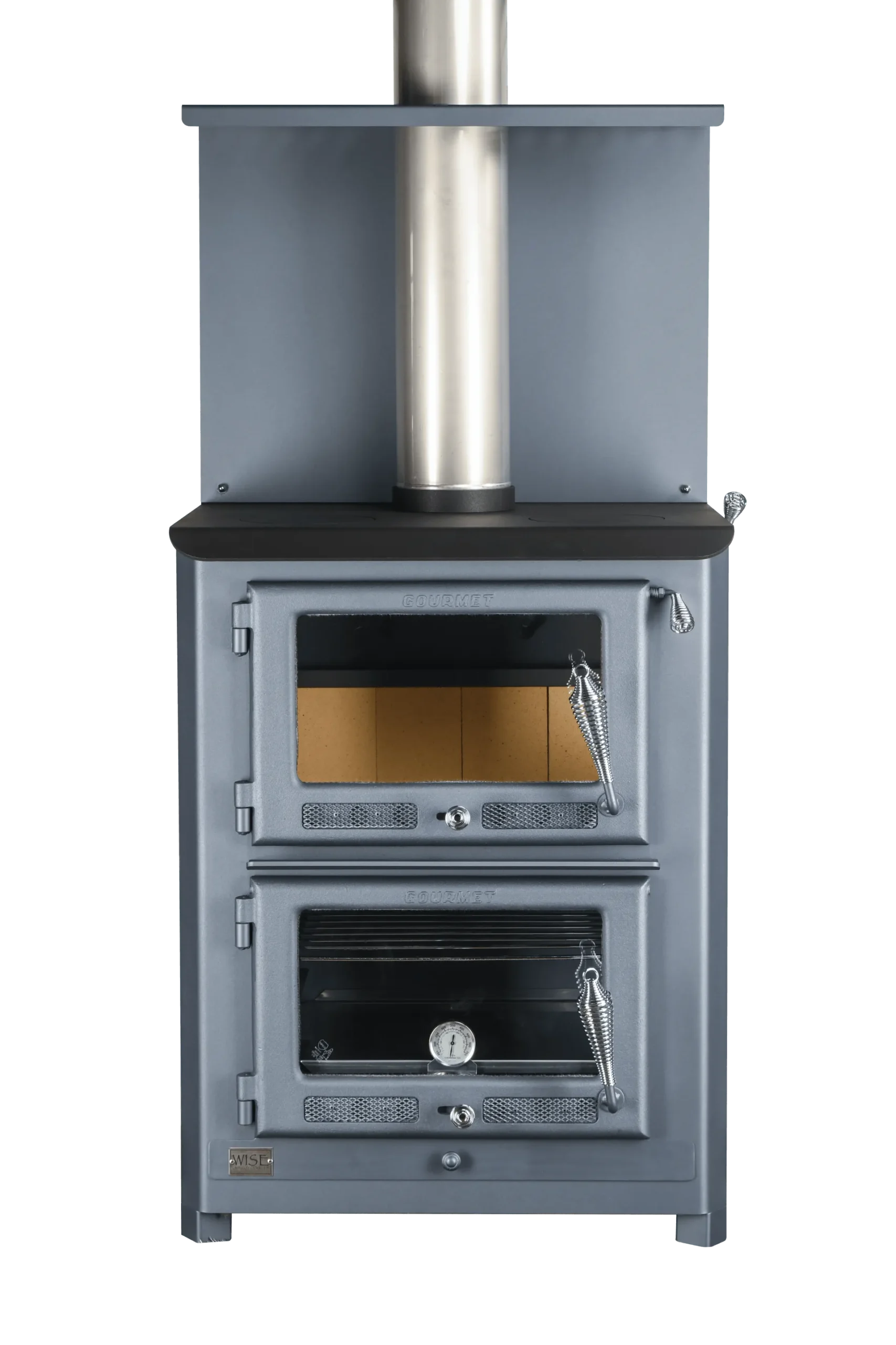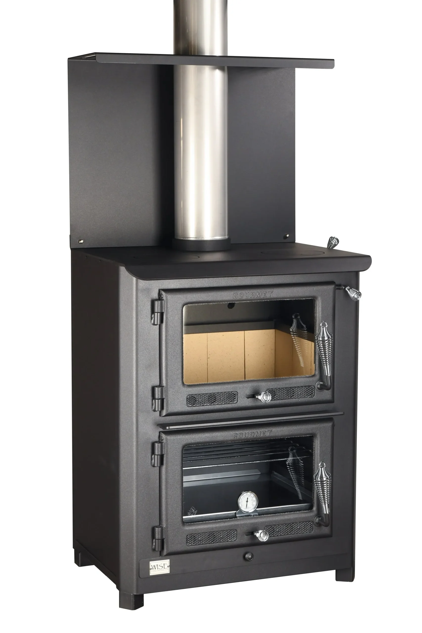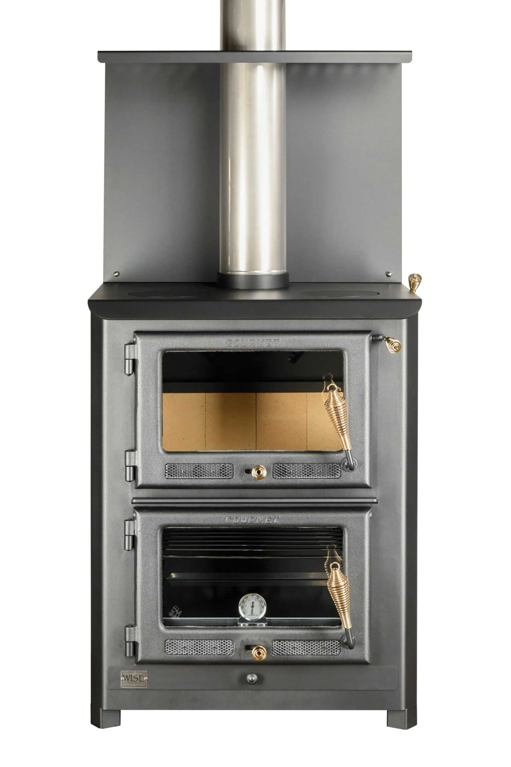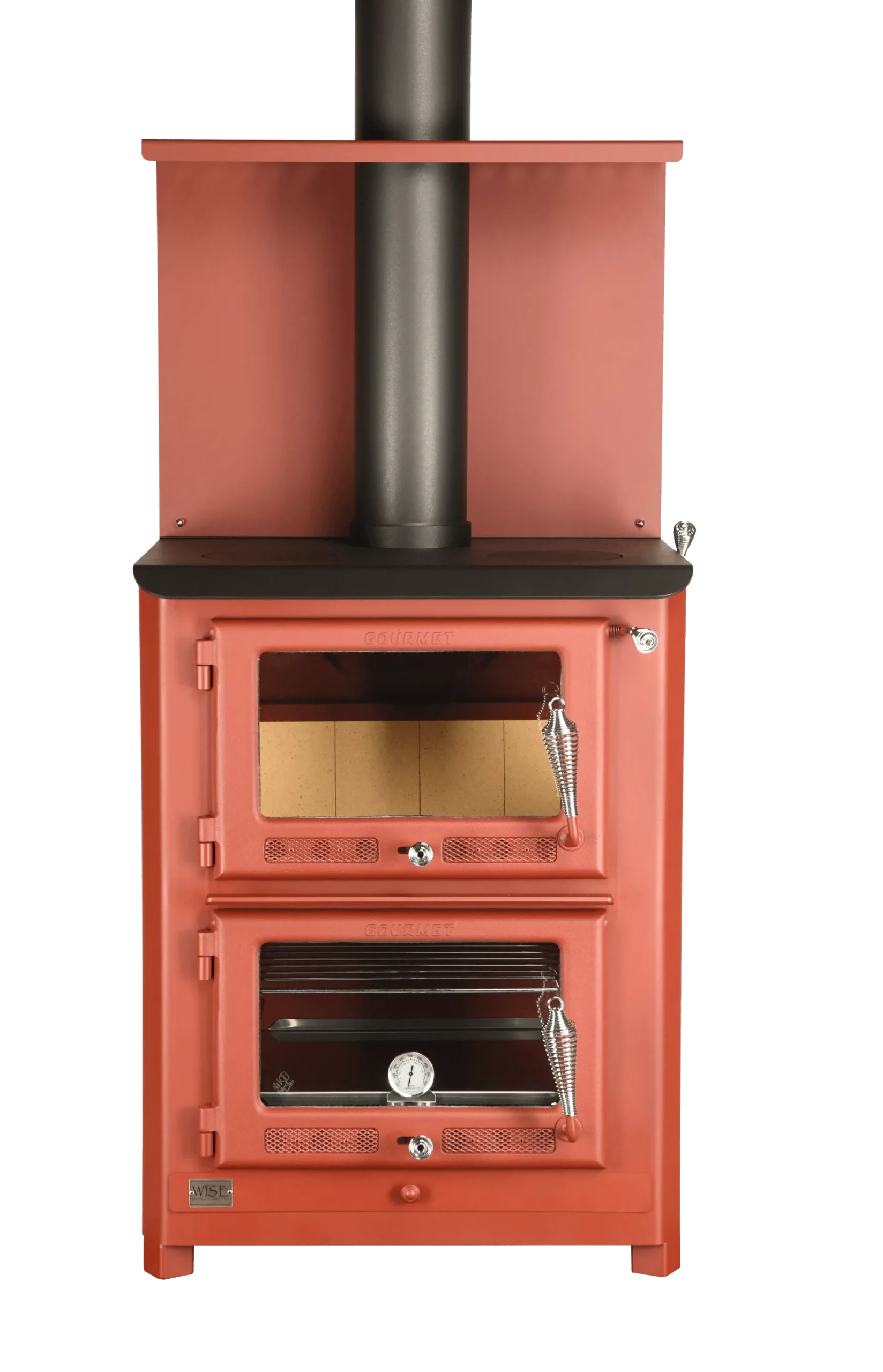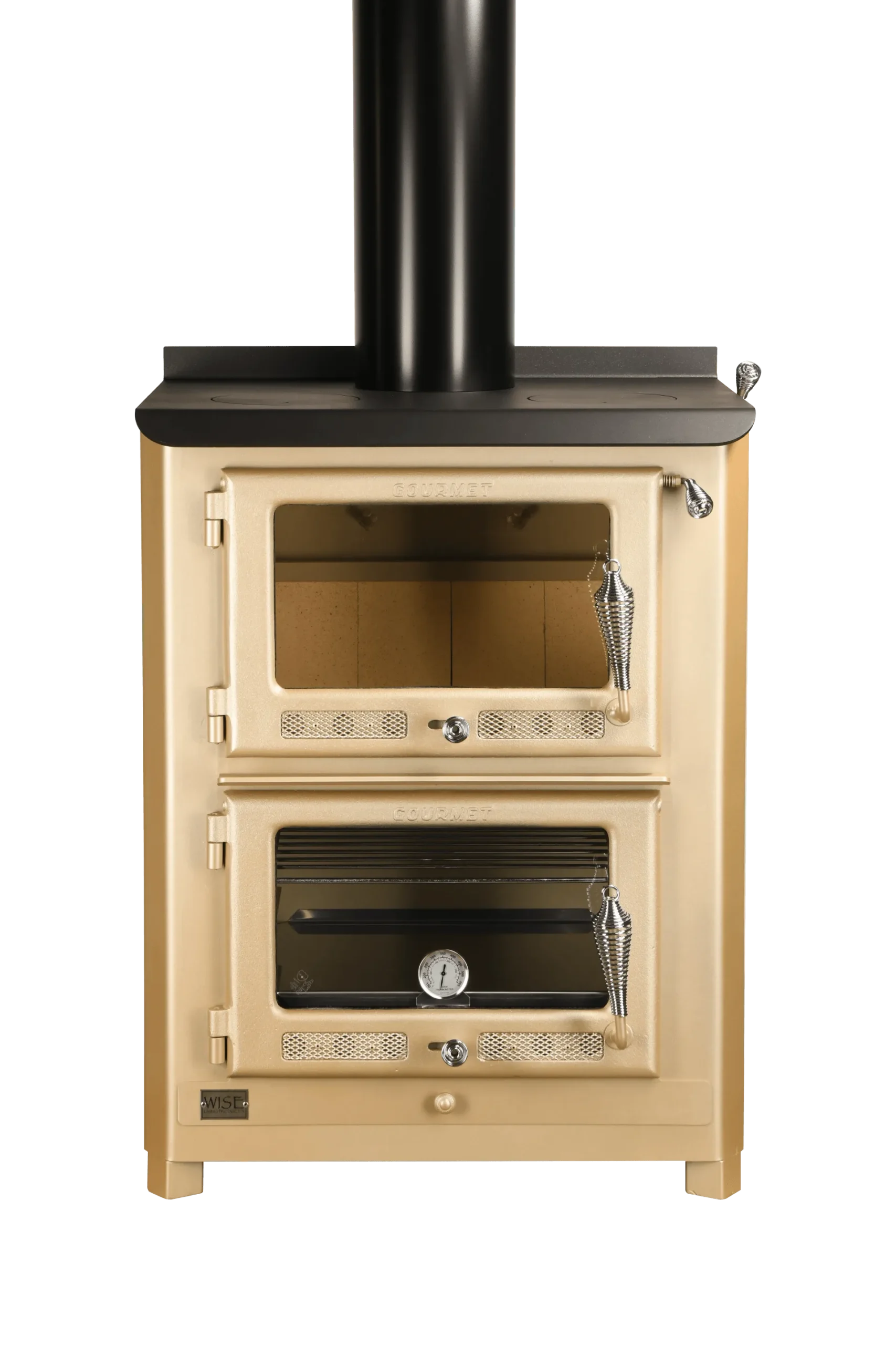 The Gourmet is a combination cooker-heater with a large cook top surface, huge glass front self cleaning oven, thermometer for accurate temperature control and a unique venting system which allows easy control of oven temperatures.