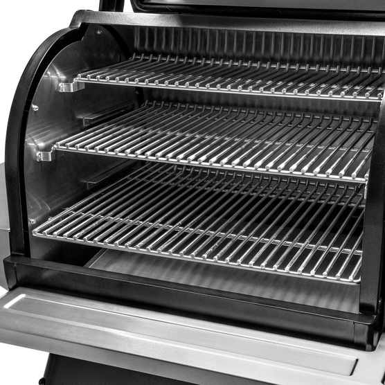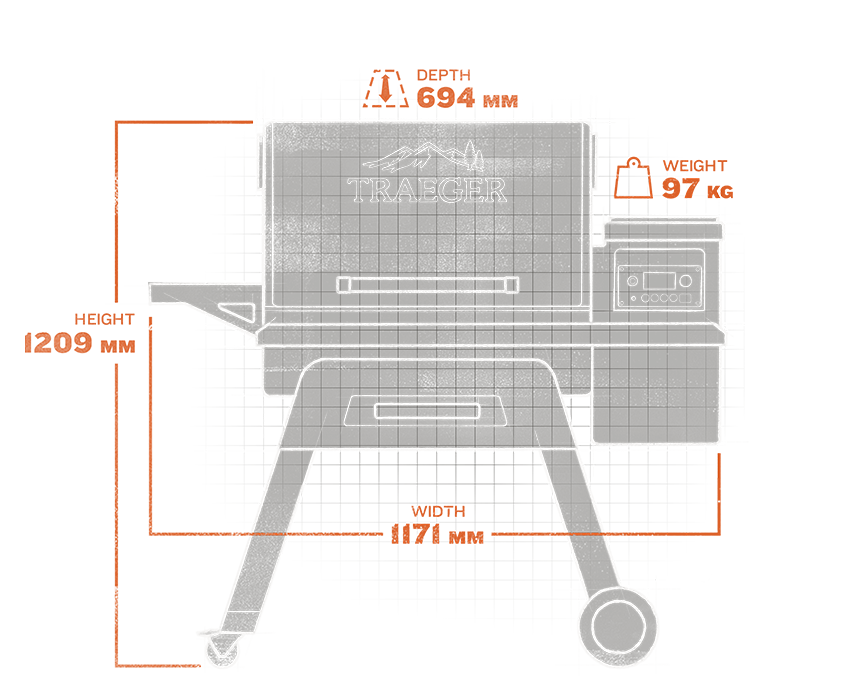 Starting at the core with a pill-shaped barrel, double-wall stainless steel interior, and airtight lid gasket, the Timberline is built with the structural integrity of Fort Knox. Grill more with the three-tier stainless steel grates, and cook it all 20% faster* thanks to the new TRU Convection system. Adjust your grill from the couch, or across town, with The Timberlines WiFIRE controller. It lets you adjust the smoke, set timers and change or hold set temperatures from 74°C to 260°C within +/- 3°C** all from your phone via the Traeger App.